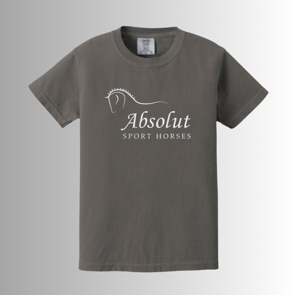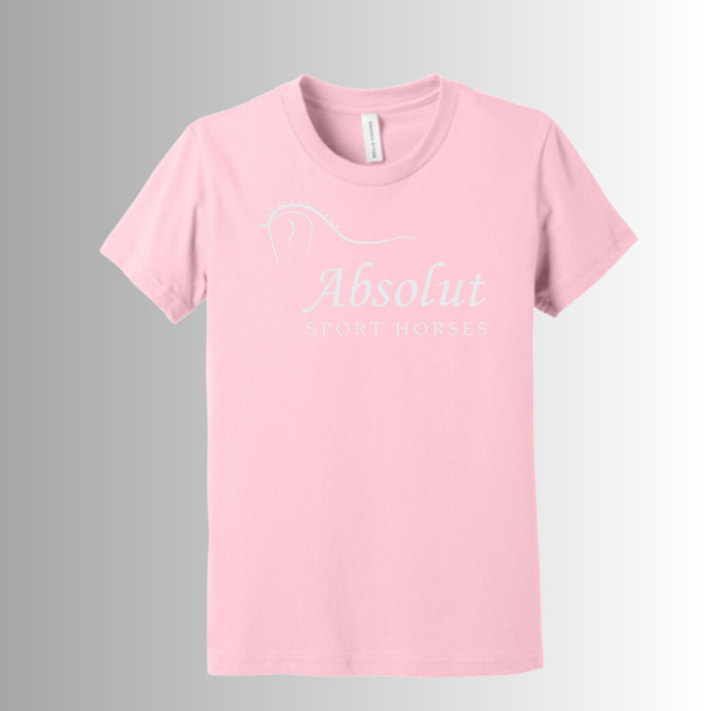 This has the Absolut logo front and center (digital heat transfer). It feels soft and lightweight, with the right amount of stretch. It's comfortable and flattering for all. You'll want to wear it all the time!