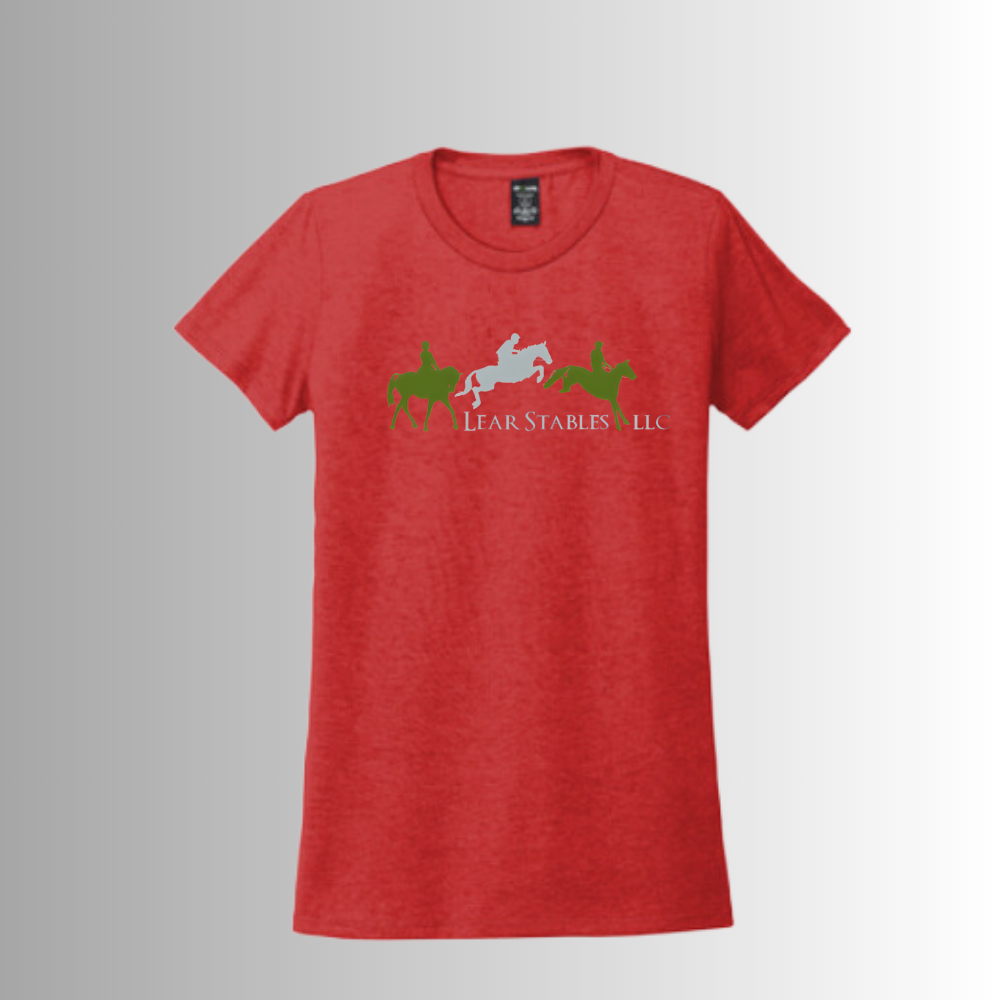 Fitted, ladies cut long sleeve tee shirt with Lear Stables logo front and center.