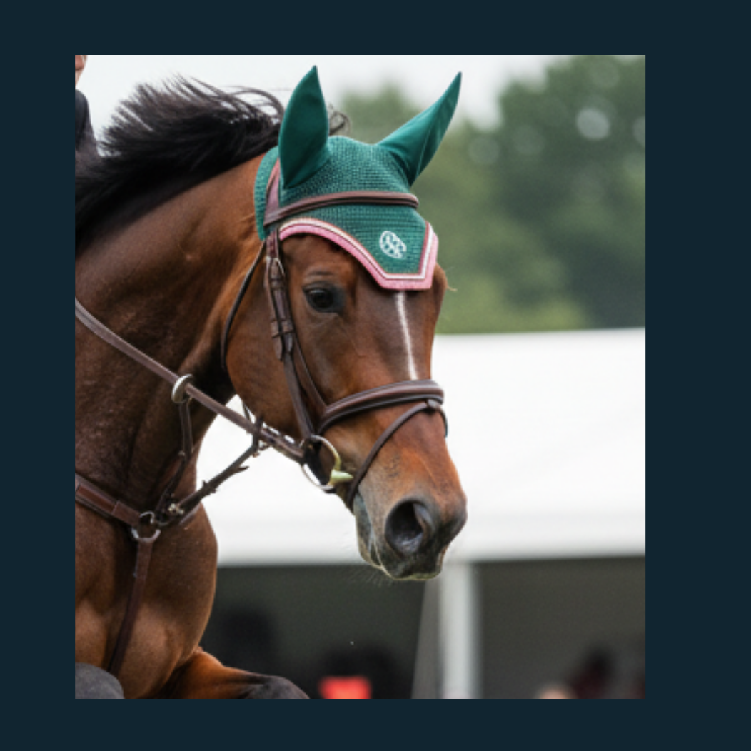 This handmade mesh bonnet has beautiful leather trim and crystal detail.  Get it embroidered with your monogram or barn logo.