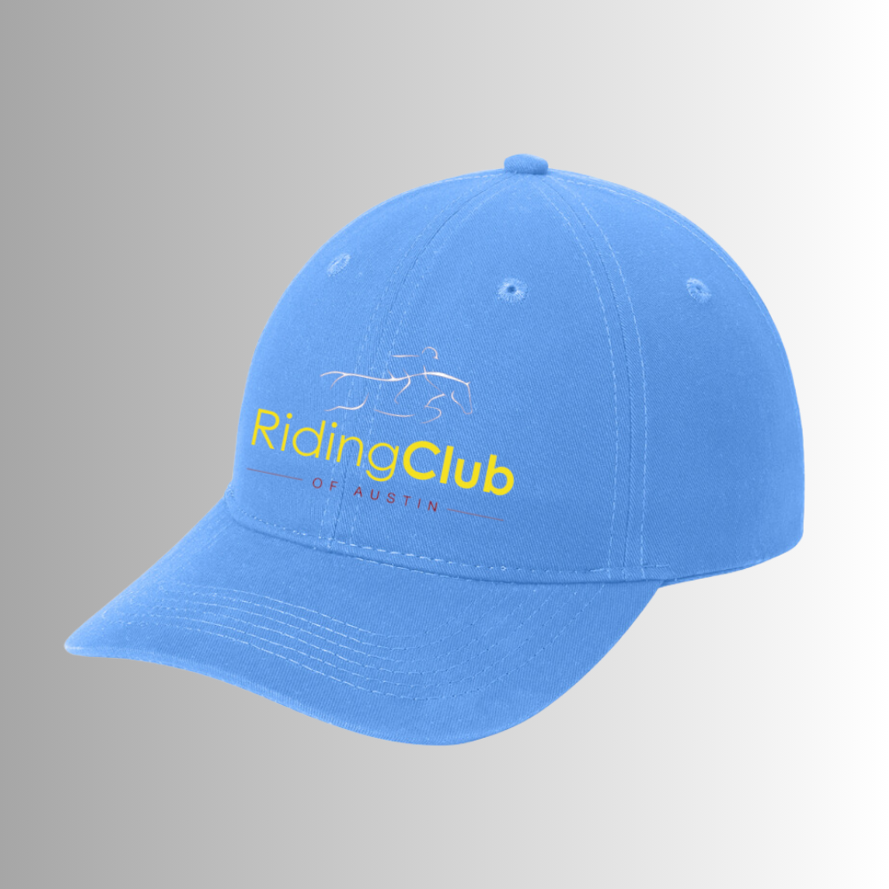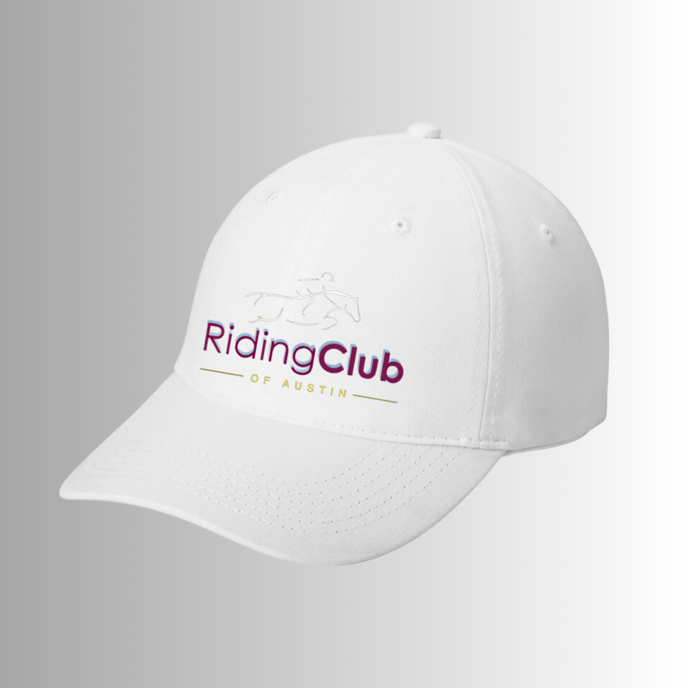 This soft and adjustable baseball cap comes with the Riding Club of Austin logo in front, and personalized with your name in back.