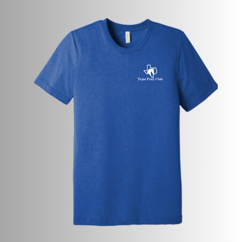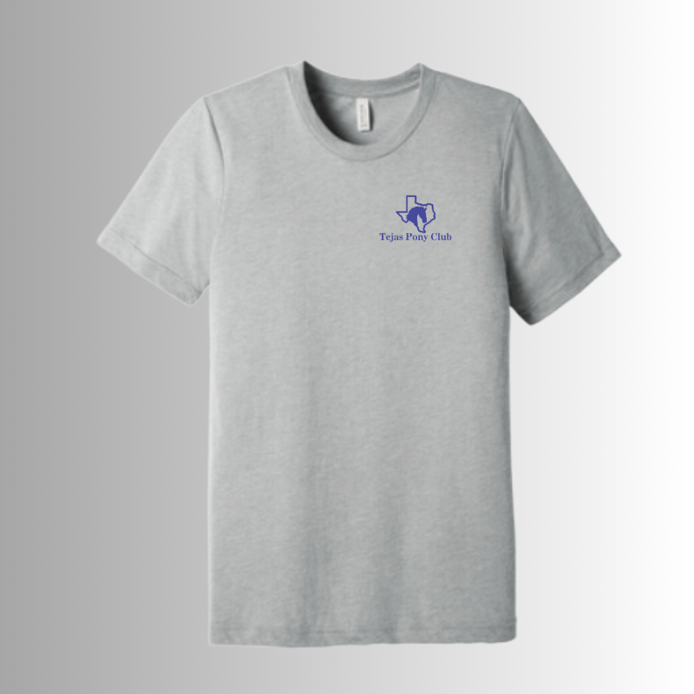 This has the Tejas Pony Club logo at left chest. It feels soft and lightweight, with the right amount of stretch. It's comfortable and flattering for all.