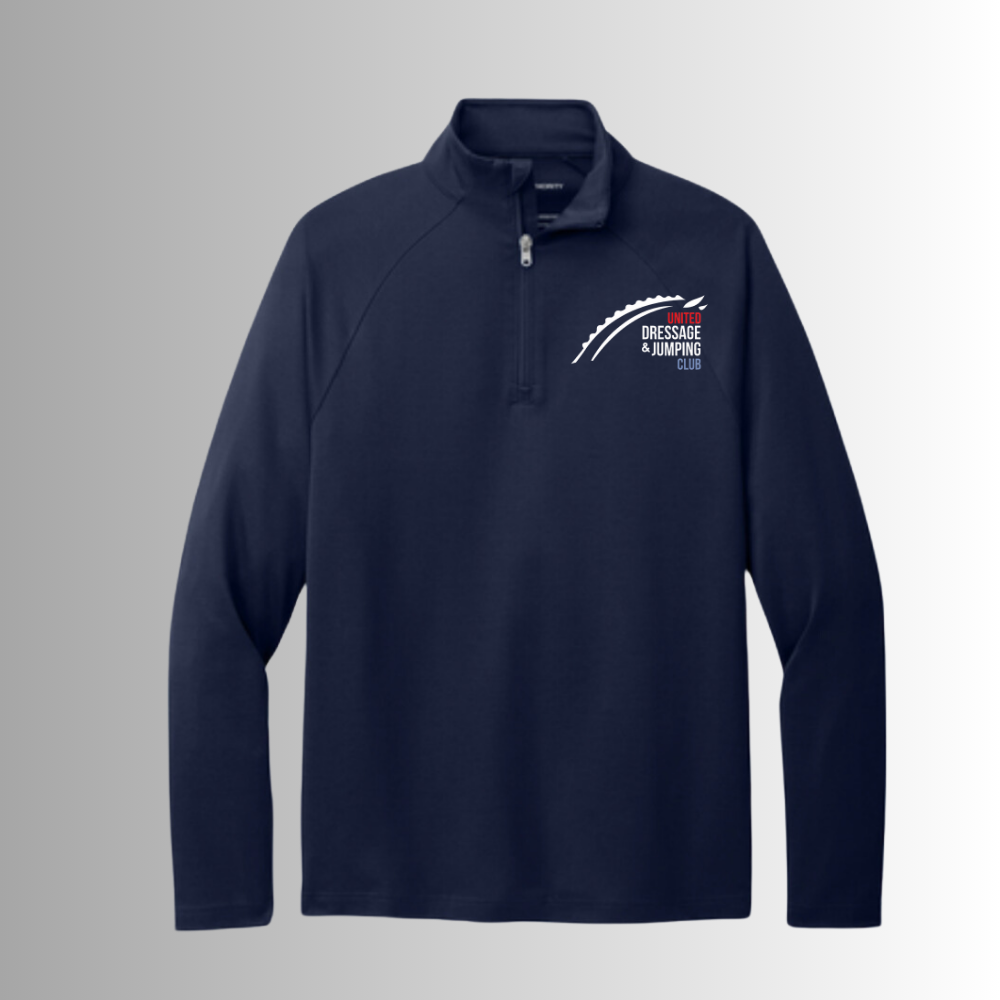 Super polished looking 1/4 zip with UDJC logo at left chest.
