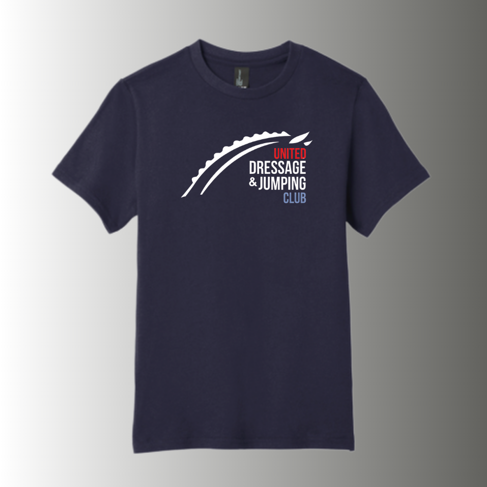 With the UDJC logo front and center (digital heat transfer). It feels soft and lightweight, with the right amount of stretch. It's comfortable and flattering for all. You'll want to wear it all the time!